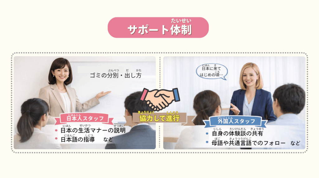 ☑日本語・母語で学習者をサポート・日本での生活体験を共有