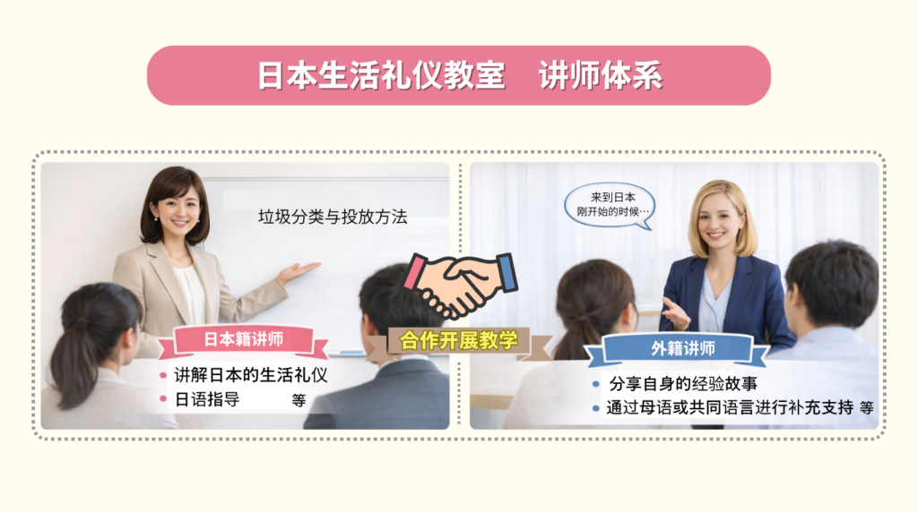 课程将由日本籍讲师与外籍讲师两人一组共同进行。